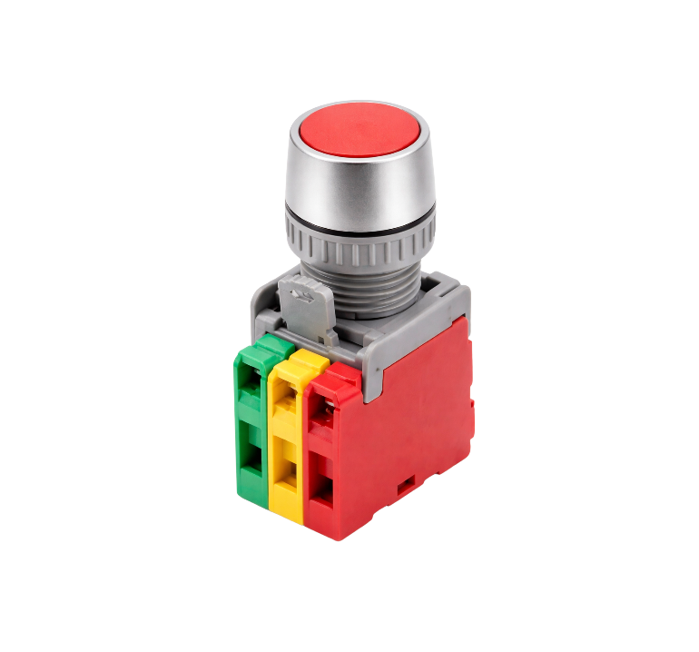 SKU: 93-1255 Red momentary push button switch designed for CNC control panels and industrial applications.